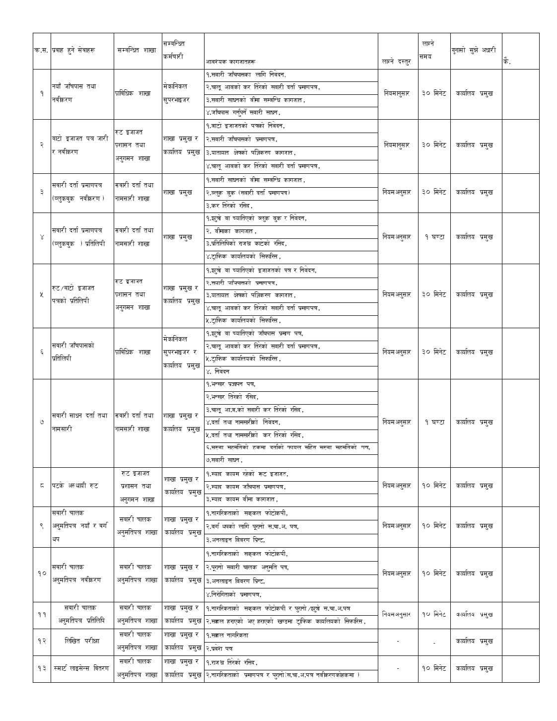 सेवा प्रवाह सम्बन्धी जानकारी सम्बन्धमा।